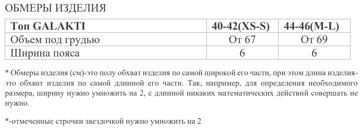 Топ GALAKTI - это не просто одежда, это настроение и сила, которые помогут вам почувствовать себя уверенно и прекрасно. Независимо от того, какую фигуру и размеры тела вы имеете, этот топ будет идеально дополнять вашу наряд и подчеркивать вашу уникальность.